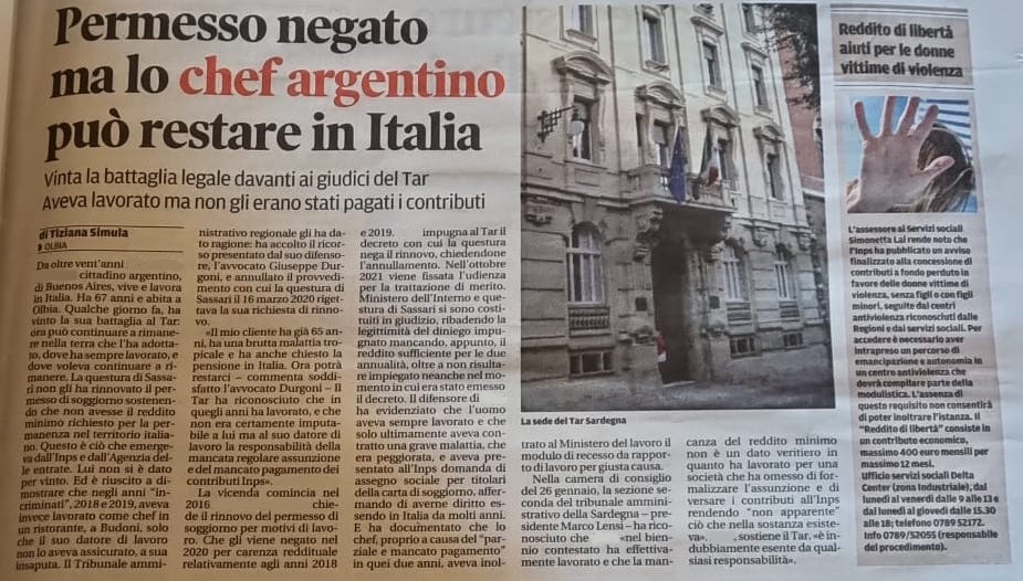 Ho lavorato in vari studi legali, prima di mettermi in proprio ed acquistare il mio studio, nell’anno 2010, sito in Olbia, via Lazio n. 44.